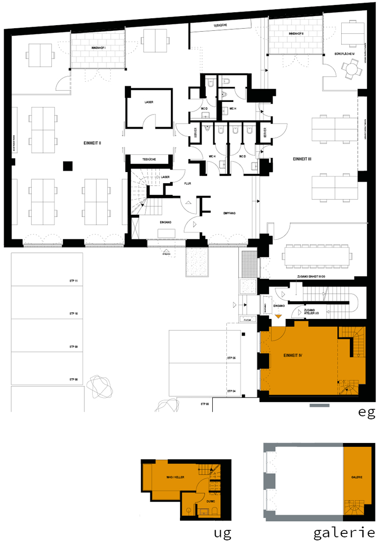 Alles auf drei Ebenen. Die Galerie eignet sich für ruhige Besprechungen oder als kleiner Rückzugsort. Hier ist noch alles offen für neue Ideen. Entweder für einen Arbeitsplatz alleine oder im Team mit drei weiteren Kollegen. Oder kombinieren Sie einfach Wohnen und Arbeiten. Lassen Sie Ihren Gedanken freien Raum!