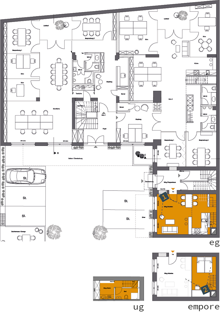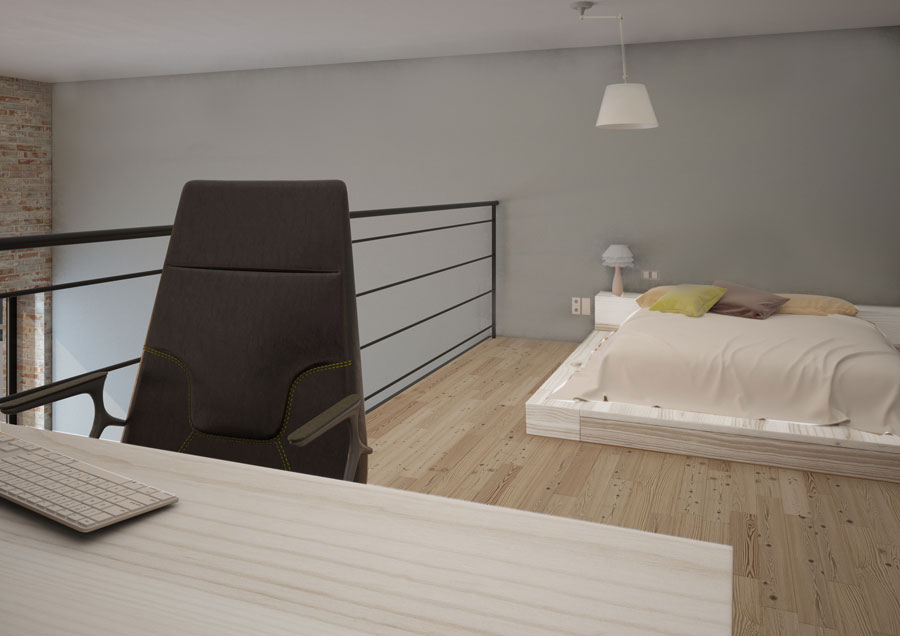 Smarter kann man Raum kaum ausgestalten. Diese etwa 46 Quadratmeter haben es in sich. Wohnen auf Erdgeschossebene, Schlafen auf der Empore – und ein Wirtschaftsraum mit Bad im Keller. Das ist junges Wohnen pur – Treppen muss man mögen, das geben wir gerne zu.